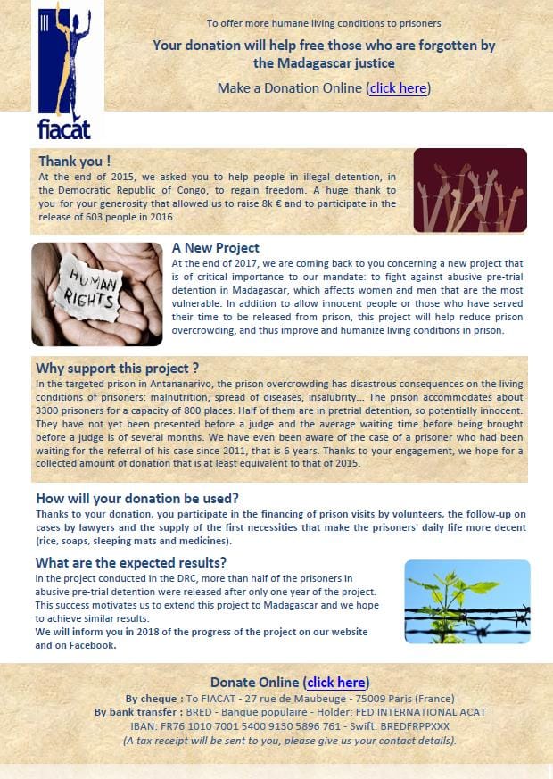 MADAGASCAR: Your donation will help free those who are forgotten by the justice